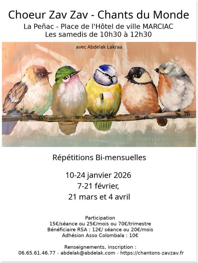 10:30: Répétitions des ateliers Chants du monde – Café associatif “la Penac”